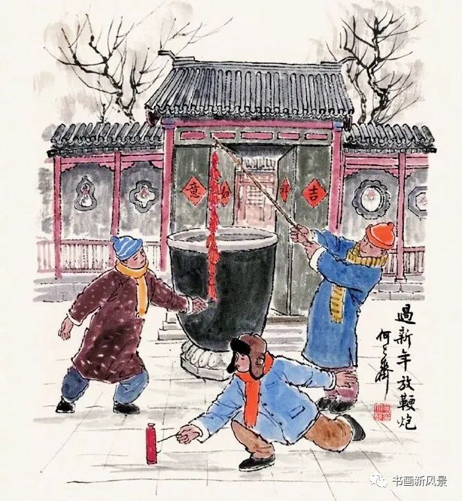 爆竹声声响彻天,垂髫小儿乐开颜。