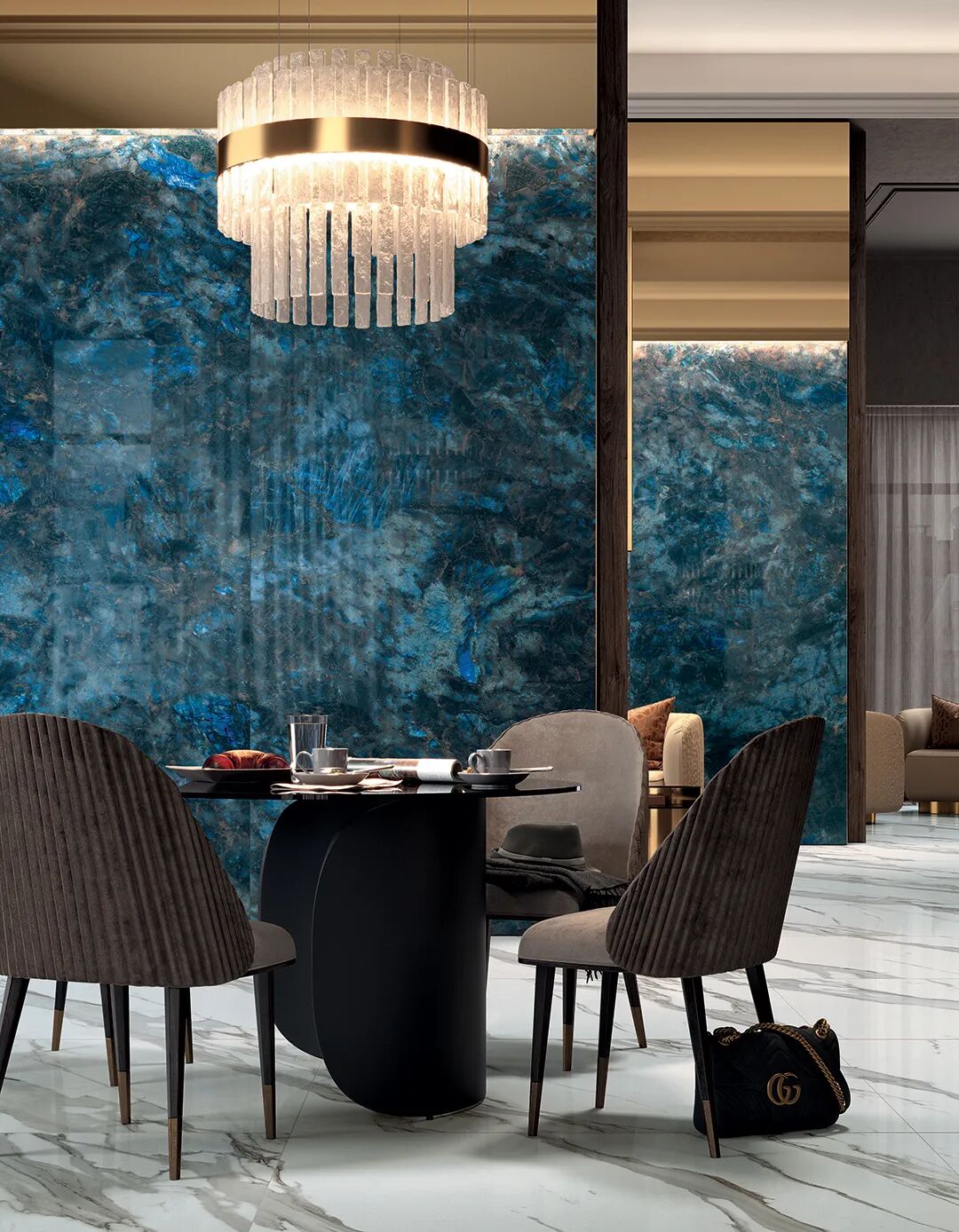 极境致臻的色彩运用以及不惜大量应用高端的天然原材料,只为使Wanderlust系列精准还原出珍贵石材色彩和纹理上的全部细节。
