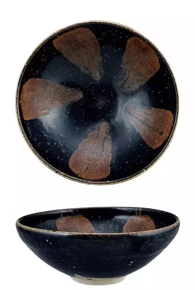 宋金磁州窑在黑釉之上以大片色斑装饰,称为“铁锈斑”;钧窑的民窑系统亦出现大量色斑作品。