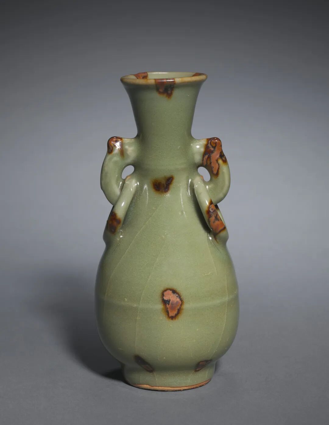 元 龙泉窑“飞青瓷”褐斑环耳瓶
