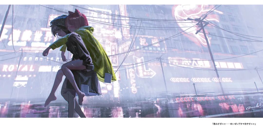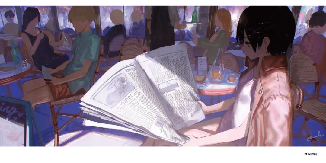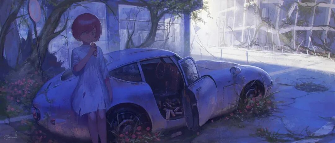 在配色上,采用明度比较高的色彩作为点缀,画面通透,氛围极佳,每一张都自带故事性。画师对于场景和人物的把控也是十分值得学习的,在大的场景刻画中,并不会过多添加繁复的细节,角色刻画也不会喧宾夺主,反而起到十分有故事性的画面感。