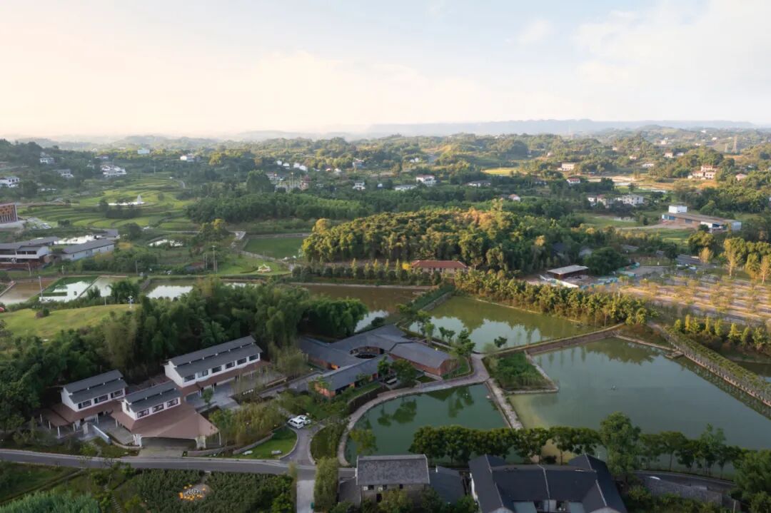 项目位于四川宜宾安石村,背靠碾盘山。村落阡陌相通,田塘错落,屋树交织,是典型的川西林盘。柴院就居于村中竹林与水塘之间。