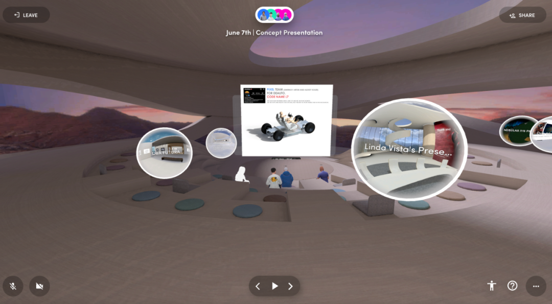 展厅布置完成后,还需要排练参观浏览指引与主题演讲。需要在展览正式开始前确定好完整、流畅、熟练的观览方案。虚拟空间布展的信息密度与复杂度都远非传统平面式 ppt 汇报可相比,团队缺乏一位优秀策展人角色,将非常影响元宇宙展览的效果。