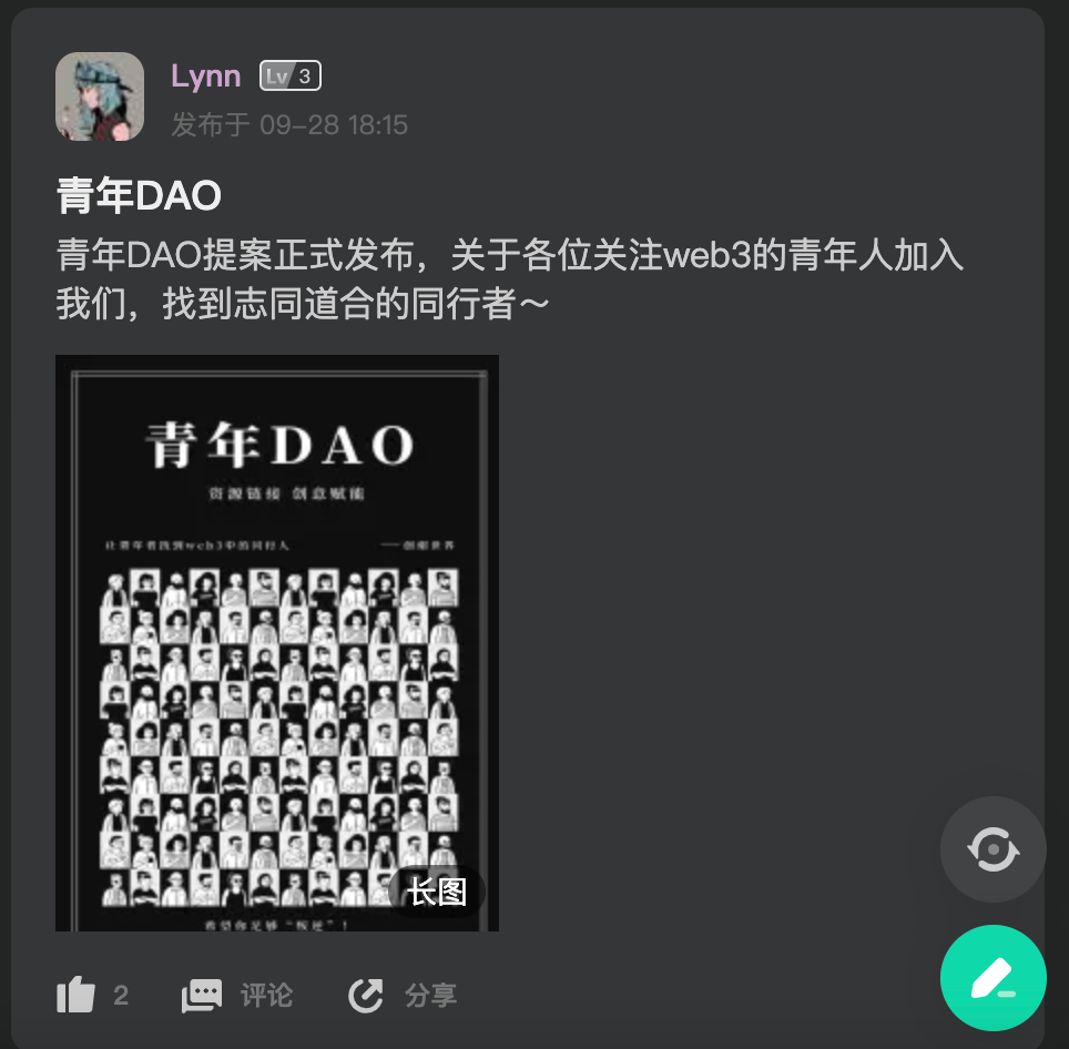 从创意想法的提出,落地方案的构建,到项目正式发布与持续推进落地,社区的孵化是运用社区优质的人才资源、专家咨询与流量支持,提供#冷启动环境,快速推进项目提案发布与持续迭代,实践优于理论,在实践中逐步落地方案。