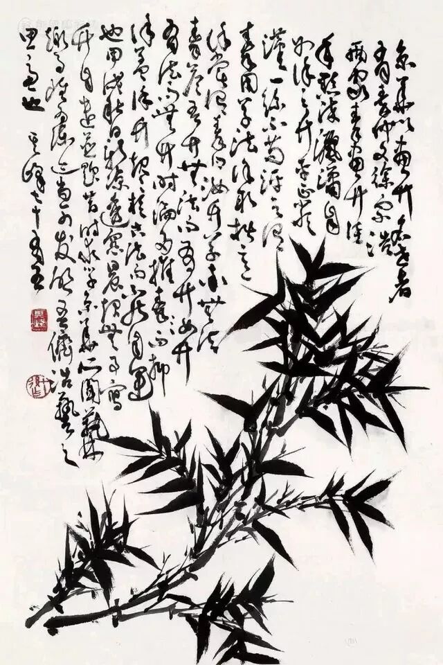 书法的结字(间架、结体),可给予绘画构图以很有益的借鉴。从“法”(具体的)上讲,写字与画画确不一样,如果从“理”上看,二者则是相同的。我们不妨把书法的结字,看成是绘画构图的骨式图,因为在结字中包含着构图学的那些相反相成矛盾统一的关系。同是某一个字,既有真、草、隶、篆的不同,又有欧、虞、颜、柳、苏、黄、米、赵的差别,可以说是变化万端。书法真是一座可资绘画构图学借鉴的大宝库。