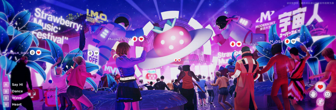 年初发布会,摩登天空公布了草莓音乐节的增强现实版本,同时也在推动草莓音乐节虚拟版本,用户依旧可以在线下感受音乐节的氛围,但当空间和时间受到限制的时候,用户也可以把他们对社交的需求、对音乐的向往转移到线上。MVM 在其中扮演的角色更倾向于创作者,思考如何在新的发展浪潮之中把内容创作出来,思考如何通过具体的视觉手法把我们的想法和愿景真真切切的制作出来、落地完成。