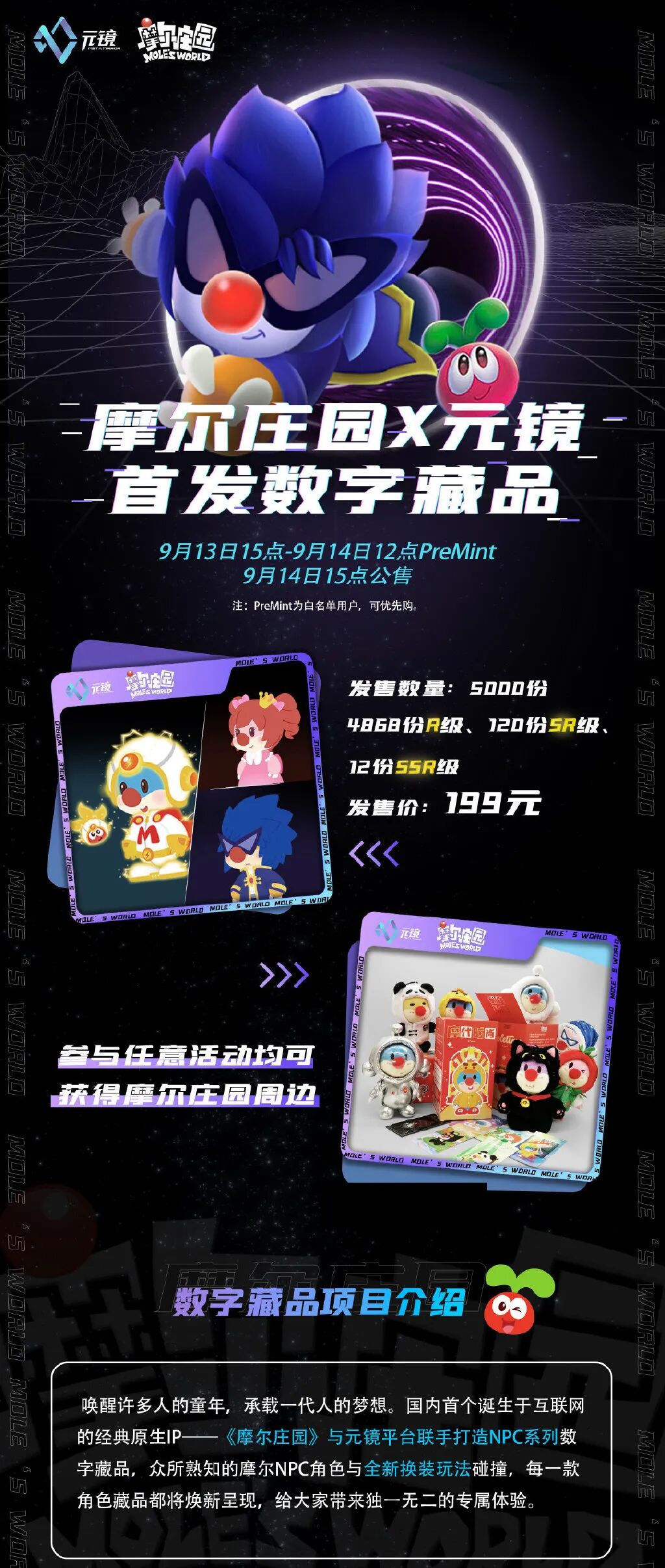 9月13日,《摩尔庄园》和元镜平台联手打造NPC系列NFT数字藏品,此次宣布发售5000份。官方表示:每一款都是独一无二的搭配呈现,经典角色换装全新玩法,虚实结合全新赋能。