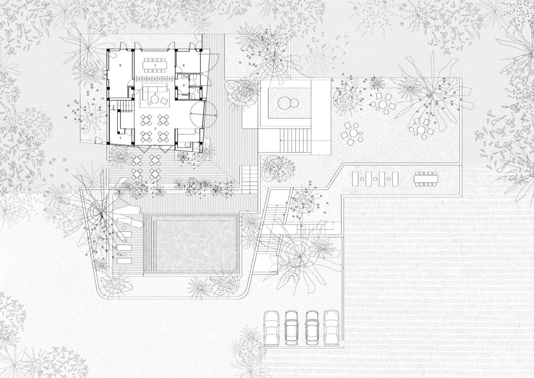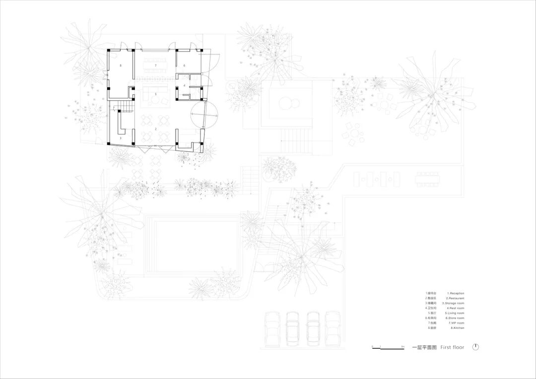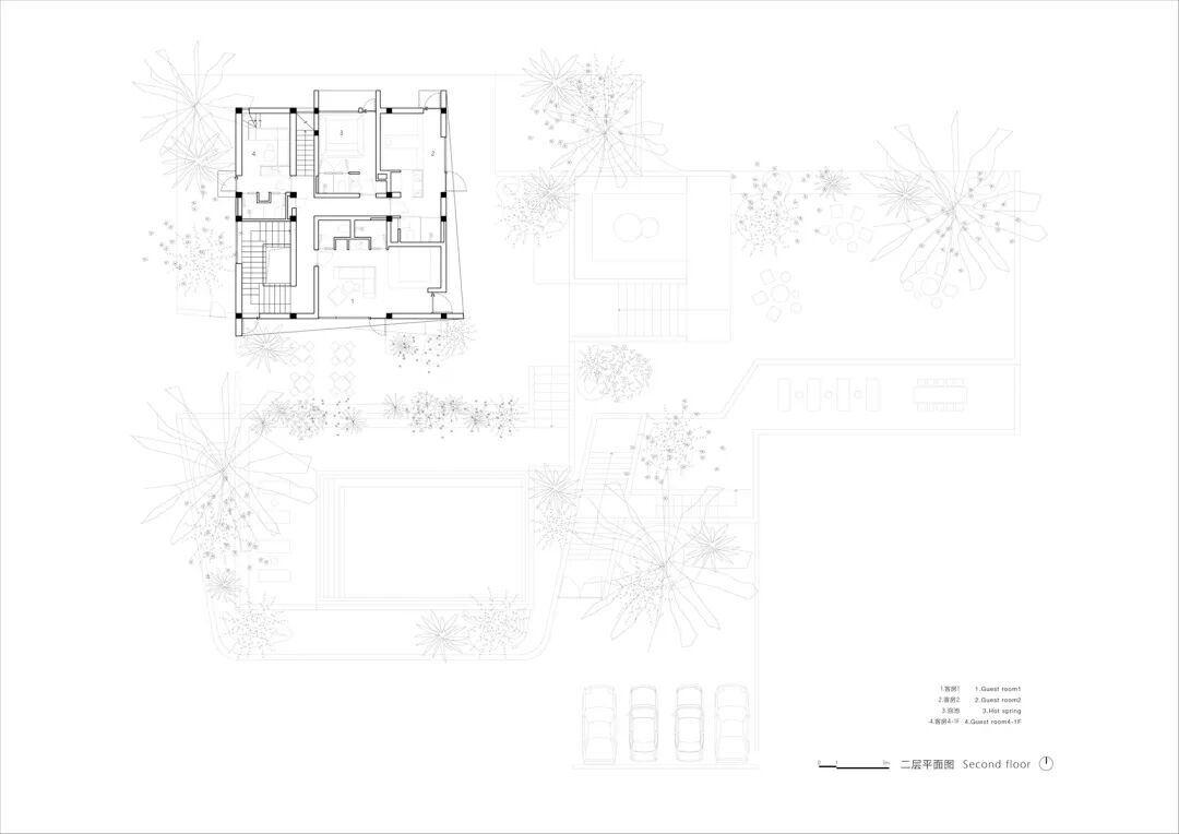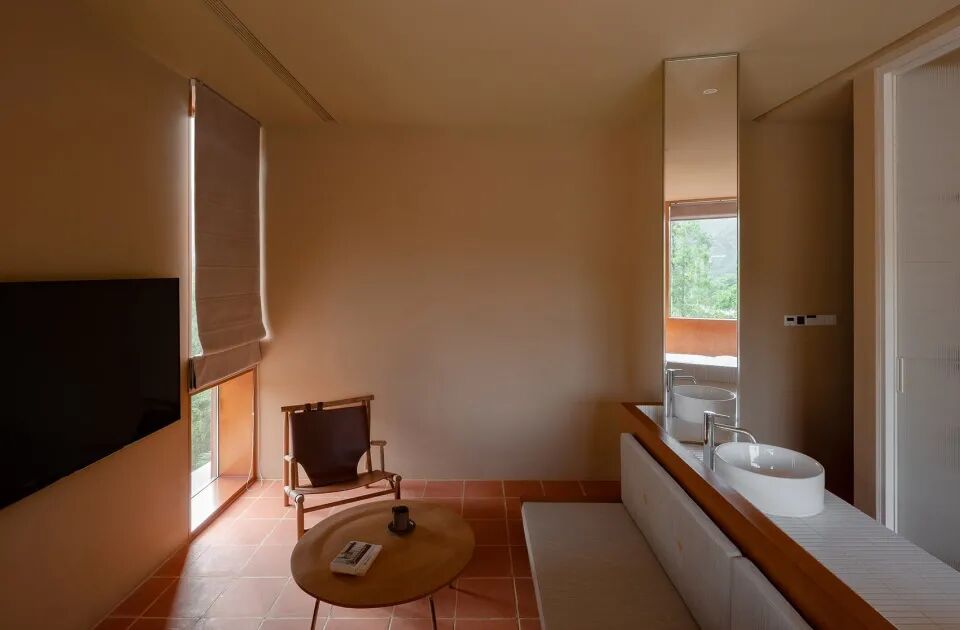 场地四周拥有丰富多样的景色和植物,因此我们希望将其进行重新梳理,从多个角度觅寻周围的水杉、茶田、竹林和远处的山峦,形成了视觉对景。同时通过建筑内部的路径动线设计,有节奏地将每个景色排列到每个窗景上,如同一幅展开的山水长卷。