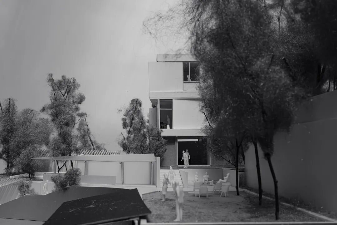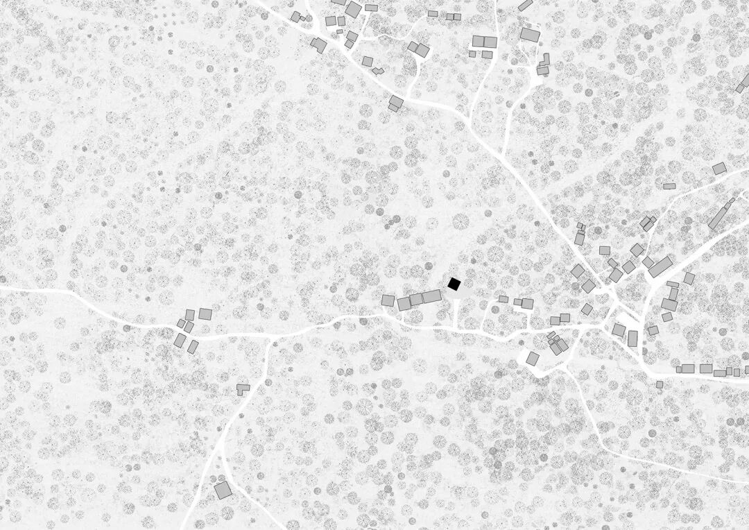 原始老宅北面背靠竹海,东面面朝茶田,前方是开阔的山峦。当我们第一次到访时业主已将老宅完全拆除,并平整了场地。同时由于当地政策限制,新建建筑长宽不得超过12m,高度也不得超过12m,因此建筑以立方体的姿态被孤立在一块空地中。