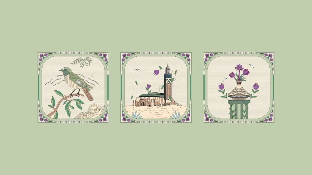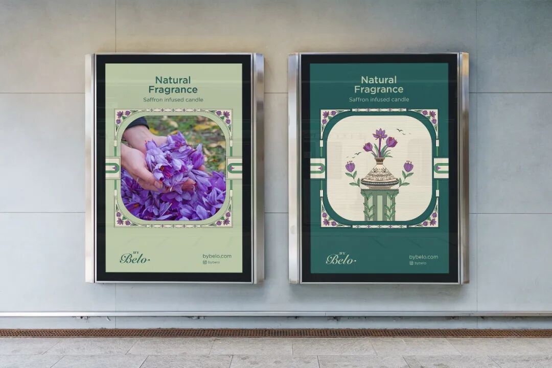 基于该品牌的支柱,即:(真实性、责任和关怀),创造一个独特的包装,描述这些概念,并提及摩洛哥的遗产,特别是历史名城 "卡萨布兰卡"。由于Bybelo的主要目标是提供最好的手工采摘的藏红花和天然香料;在包装设计中突出这一使命是必须的。因此,为包装设计选择了三个元素。真正的红尾鸟,因为它是高阿特拉斯山脉的特有物种之一,通过带来食物来照顾它的孩子,直到成年。第二个元素是卡萨布兰卡的哈桑二世清真寺,因为它是摩洛哥文化遗产的真实象征,它是非洲第二大清真寺和世界第七大清真寺。第三个元素是摩洛哥的tajin,因为它与烹饪和藏红花香料有关。