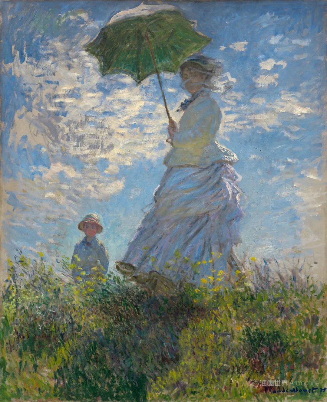 撑着太阳伞的女人--莫奈夫人和她的儿子,1875年