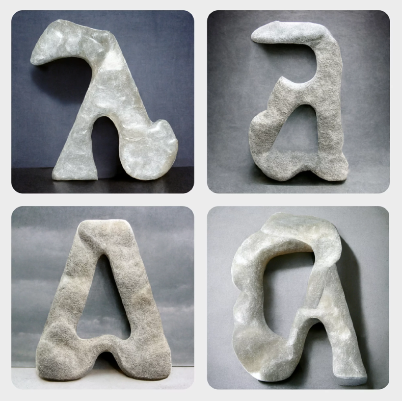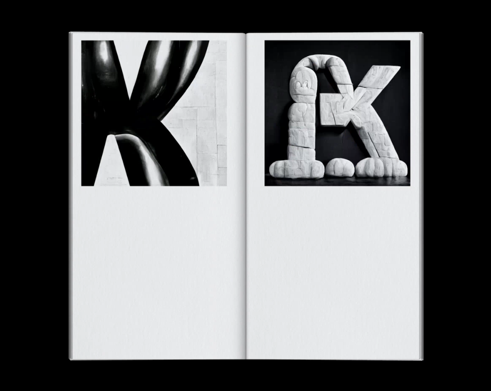 Andrea A. Trabucco-Campos 和 Martín Azambuja 的著作《人工文字设计》(Artificial Typography)探索了这些问题。他们尝试使用 AI 绘画工具 Midjourney,让 AI 运用从未参与字体设计的知名艺术家、建筑师和设计师的手法,构想出相应风格的字体。最终,他们发布了一份“透过 52位知名艺术家视角,适应多种媒体的字体”,26 个字母拥有全新的风格,效果令人惊叹。