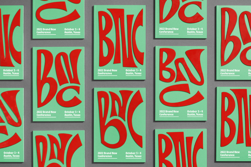 另一个打动我们的案例是 2022 Brand New 大会的标识。UnderConsideration 最受欢迎的品牌专家与动效大师 Sultan Jum(又名 Geo)合作,使用 Nuform Type 的 Ozik 字体创造出一种“古怪”的设计概念,效果极富动感与冲击力,致敬该会议的举办地得克萨斯州奥斯汀,及其城市口号“沿袭奥斯汀的古怪气质”。