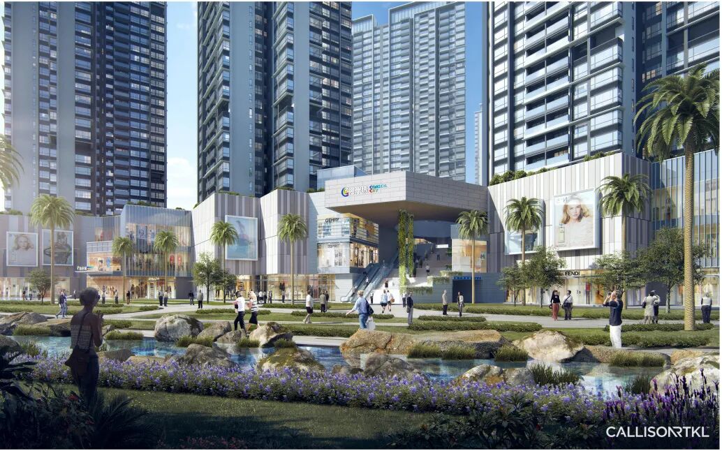 万丰海岸城购物中心及其街区商业,坐落于四个地块,设计环环紧扣,彼此相连。CRTKL引入了“显山露水,仿效自然”的理念,设计围绕四个关键主题展开:建筑场所“公众舞台”;“漫步空间”开放共享;生活艺术“有机融合”;立体自然“交织共生”。