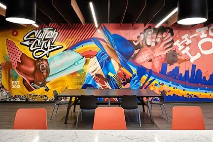 Power Home Remodeling休斯顿办公空间面积为1500平方米,其设计灵感源自休斯顿充满活力的街头艺术场景,CRTKL营造了一个既能够体现当地文化和社区、又富有趣味的工作环境。设计采用了自然和精巧的元素,为视觉冲击力较强的区域实现了较好的平衡。