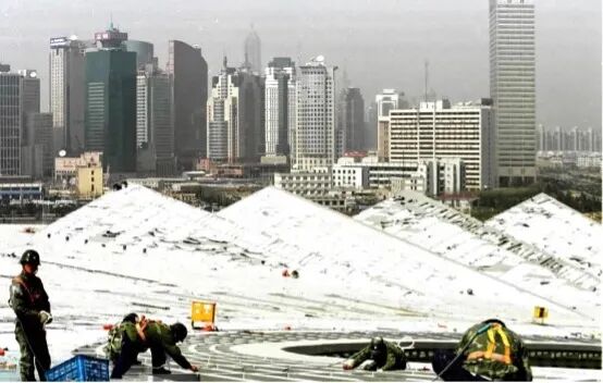 2001年3月20日,上海科技馆建设进入收尾阶段。© 新华社记者张明(图片来源于网络)