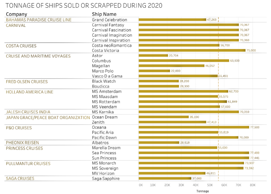 上图列明了仅2020年一年累计出售或报废的船只清单。船只吨位从20000总吨到77000总吨不等。(数据来源:Abe Desooky整理的图文资料)
