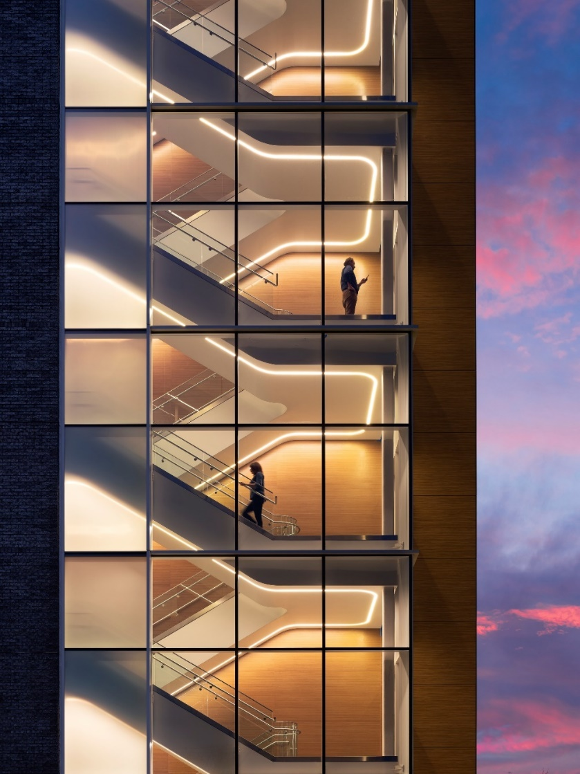 楼梯采用独特美学理念设计,兼具实用性,有利于改善健康、福祉并促进人员流动 ©Chris Cooper