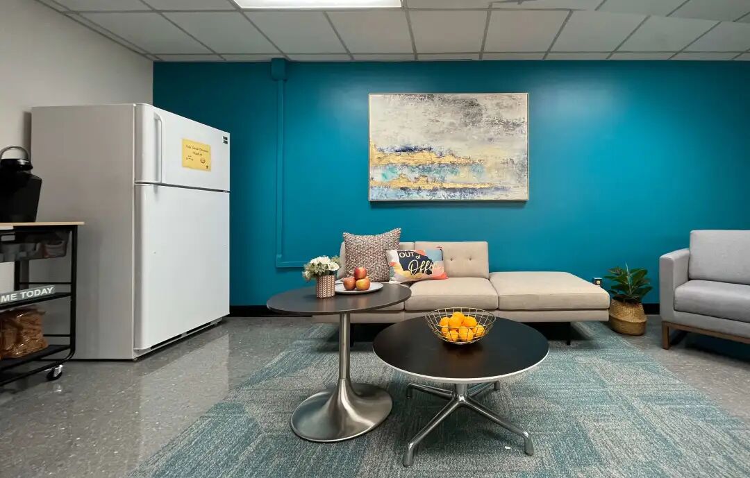 经过短短两周的规划,CRTKL达拉斯办公室的团队在周六一早便开始行动,在一天内就完成了大部分项目。我们拆除了现有的布告板和镜子,用鲜艳的颜色修补和粉刷了墙壁。并为休息室添置了OFS捐赠的新家具、用Interface捐赠的地毯铺设休息区。CRTKL社会行动委员会捐赠并购置了新的厨房设施及装饰画,并在厨房储备了零食和咖啡。