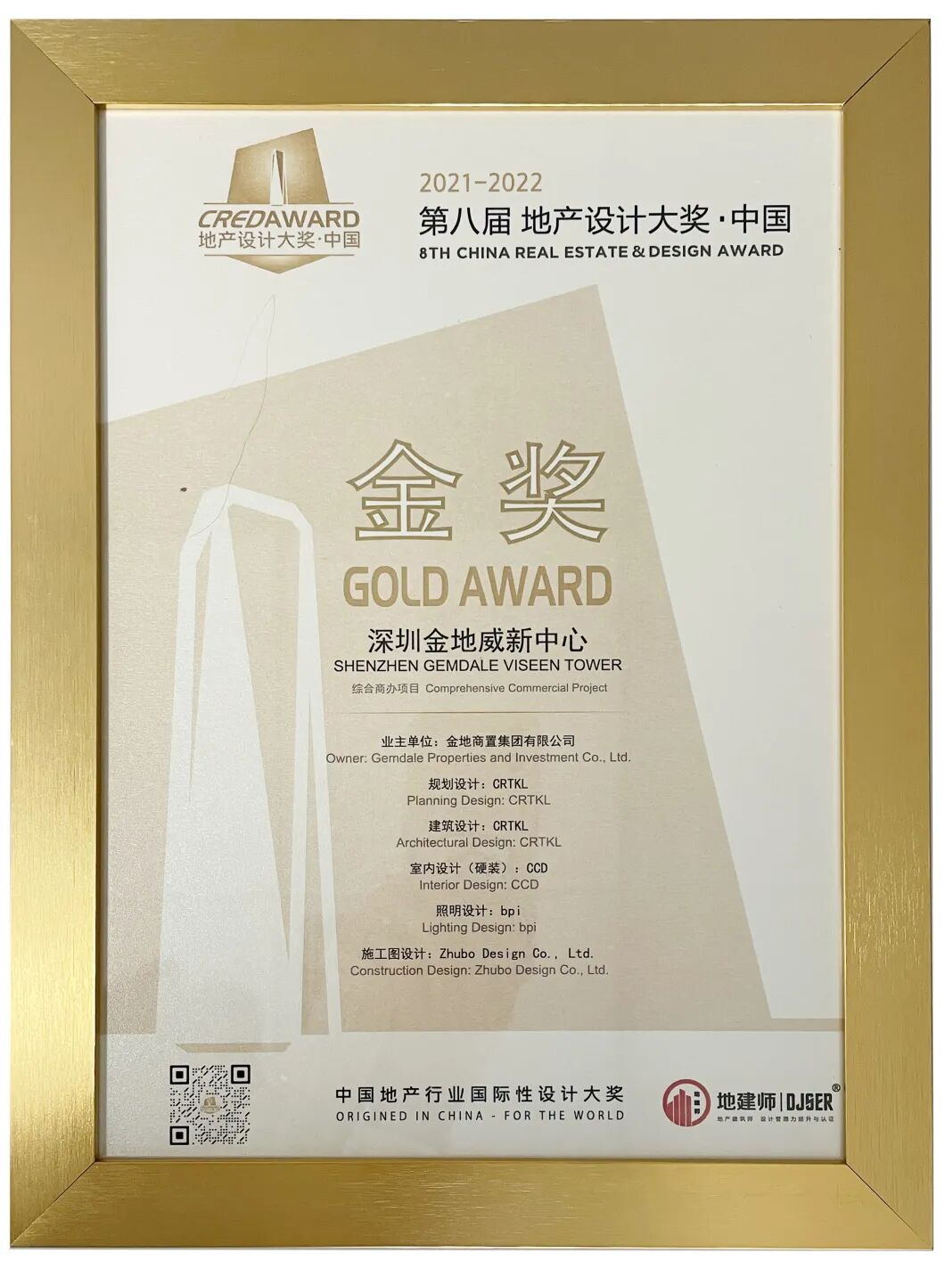 在本次大赛中,CRTKL设计项目“深圳万象天地”荣获综合商办项目类别综合体金奖;“深圳金地威新中心”荣获综合商办项目类别办公/写字楼金奖;与珠海华发建筑设计公司联合设计的“华发统建 · 锦江首府”荣获居住项目-高端/精品住区类别优秀奖。