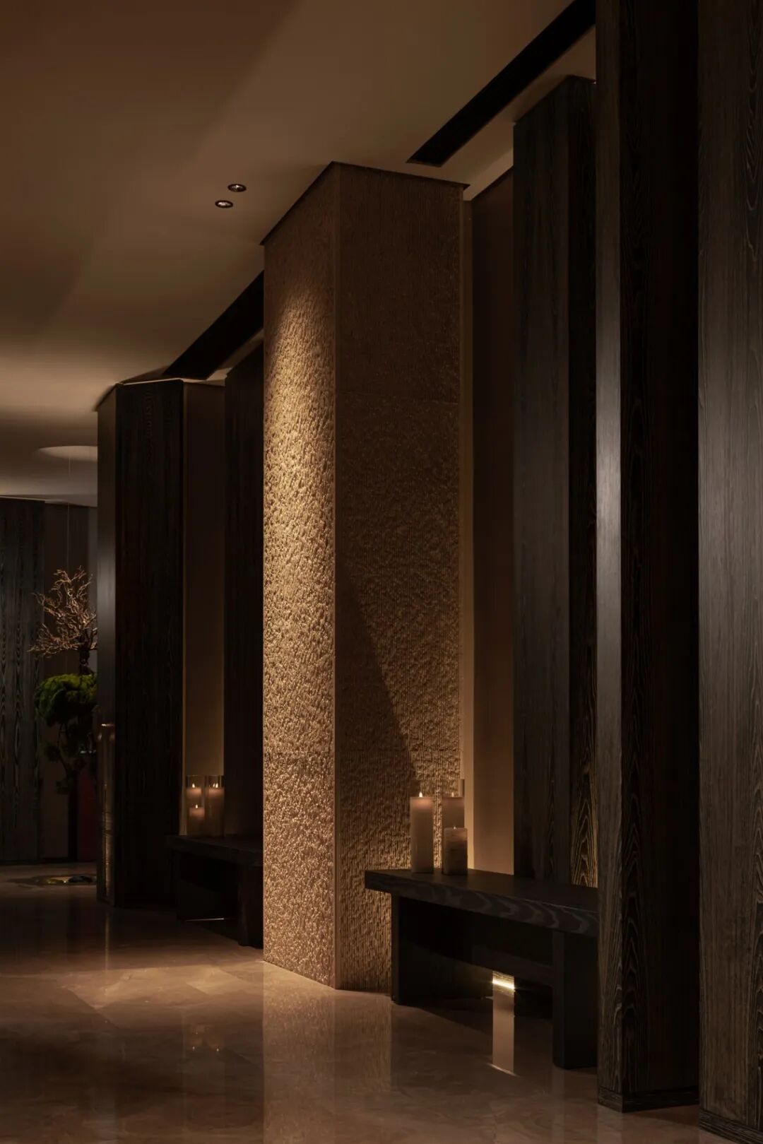 Faced with the grille, textured wall and soft light, people will be instantly wrapped up in the sense of comfort and ease released by the Spa space. " In the creation of lifestyles, experience and feeling as the non-negligible force are always influencing people’s decisions and striking at the heart."