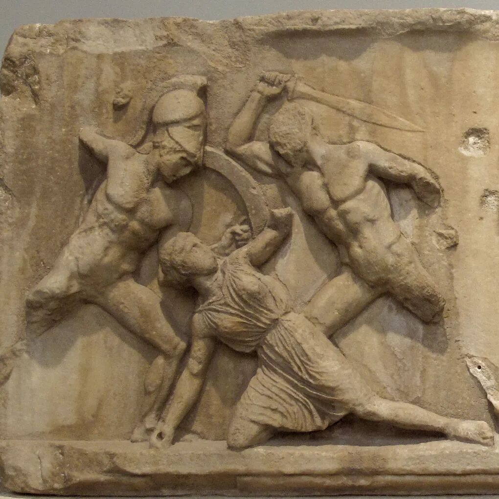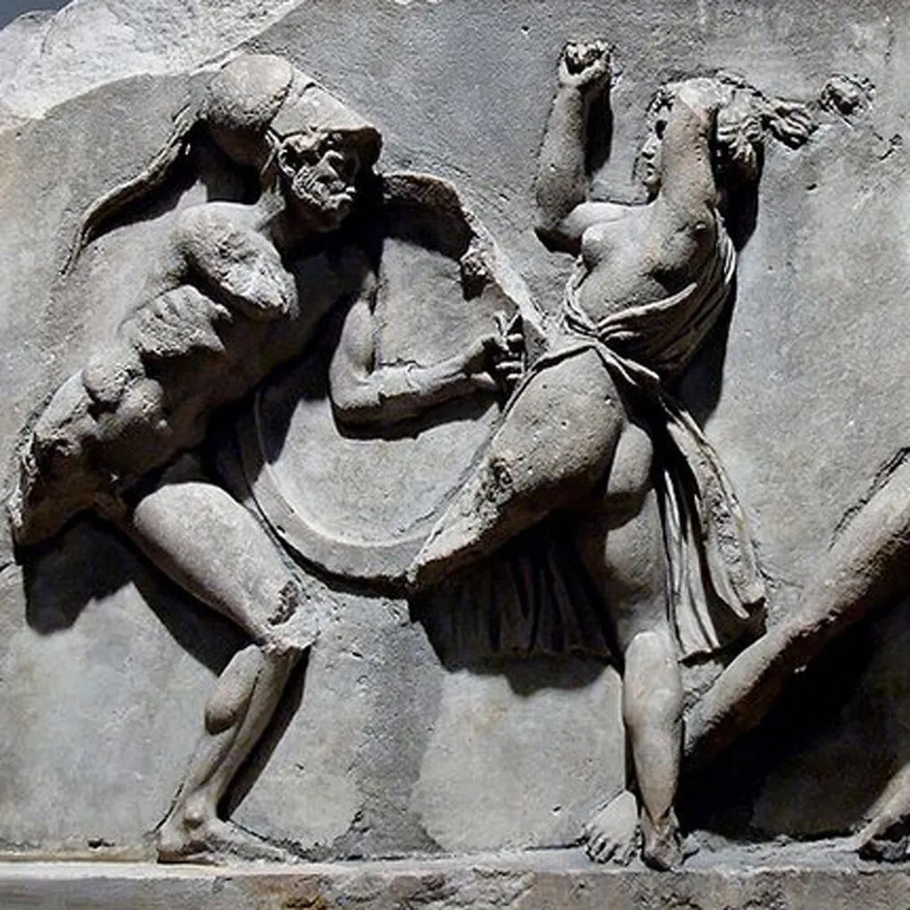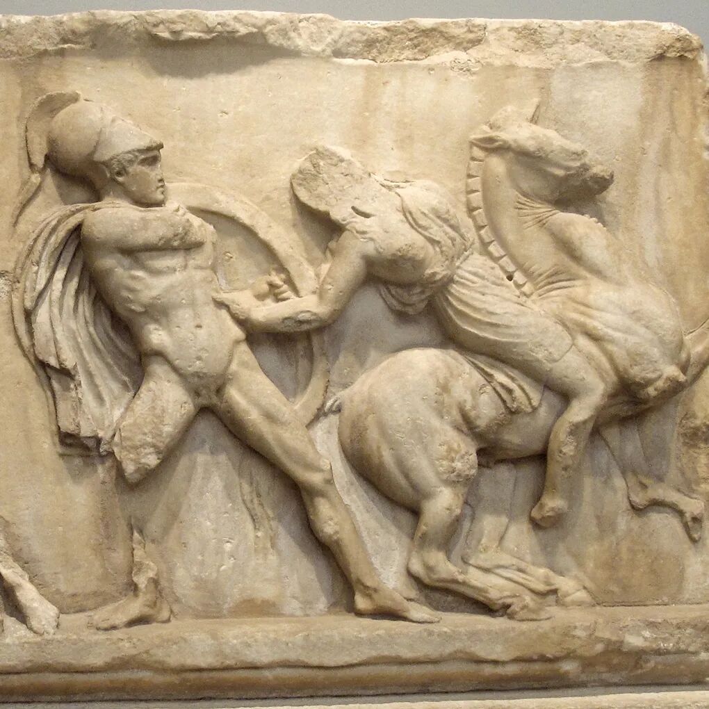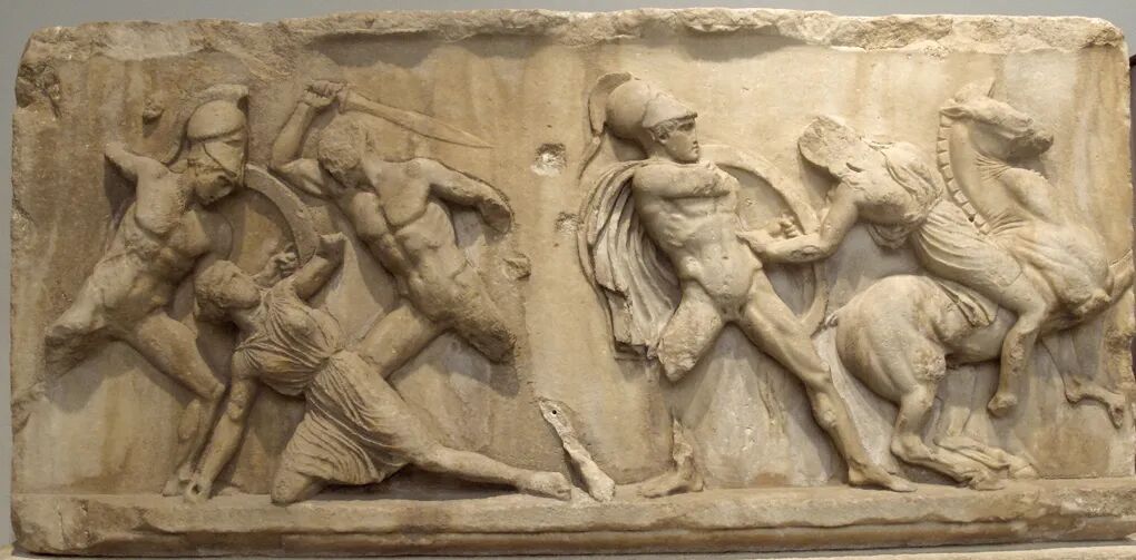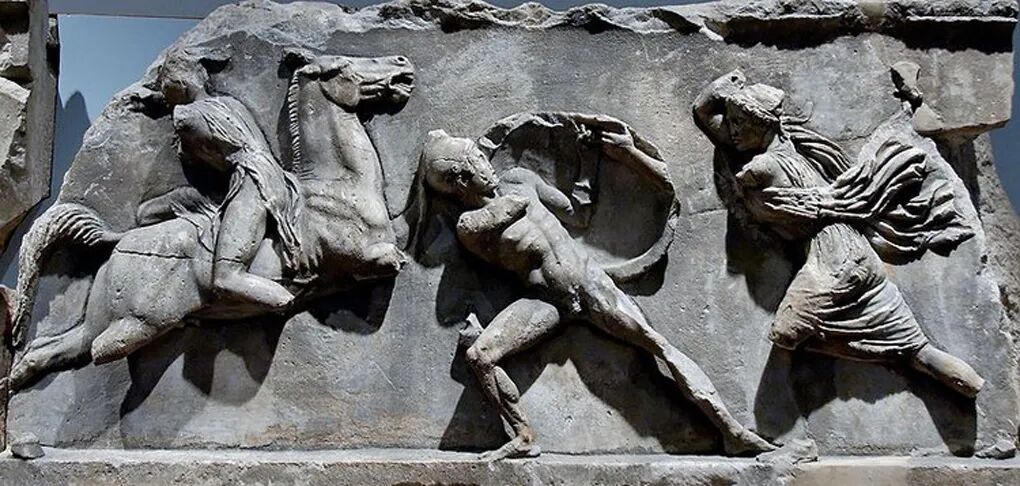 大家好!今天给大家介绍古希腊雕塑家斯科帕斯创作于公元前四世纪希腊化时期初期的作品《摩索拉斯王陵墓浮雕》,现收藏于英国伦敦大英博物馆。