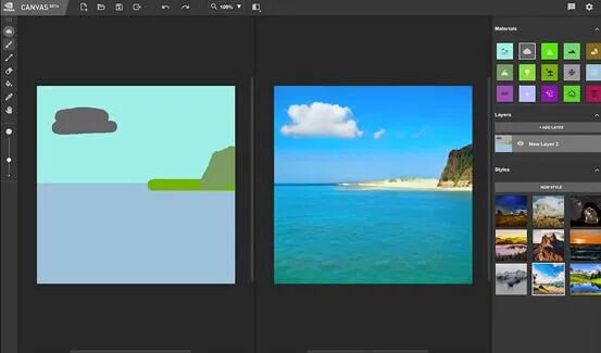 将简单的笔触利用AI变成逼真的风景图