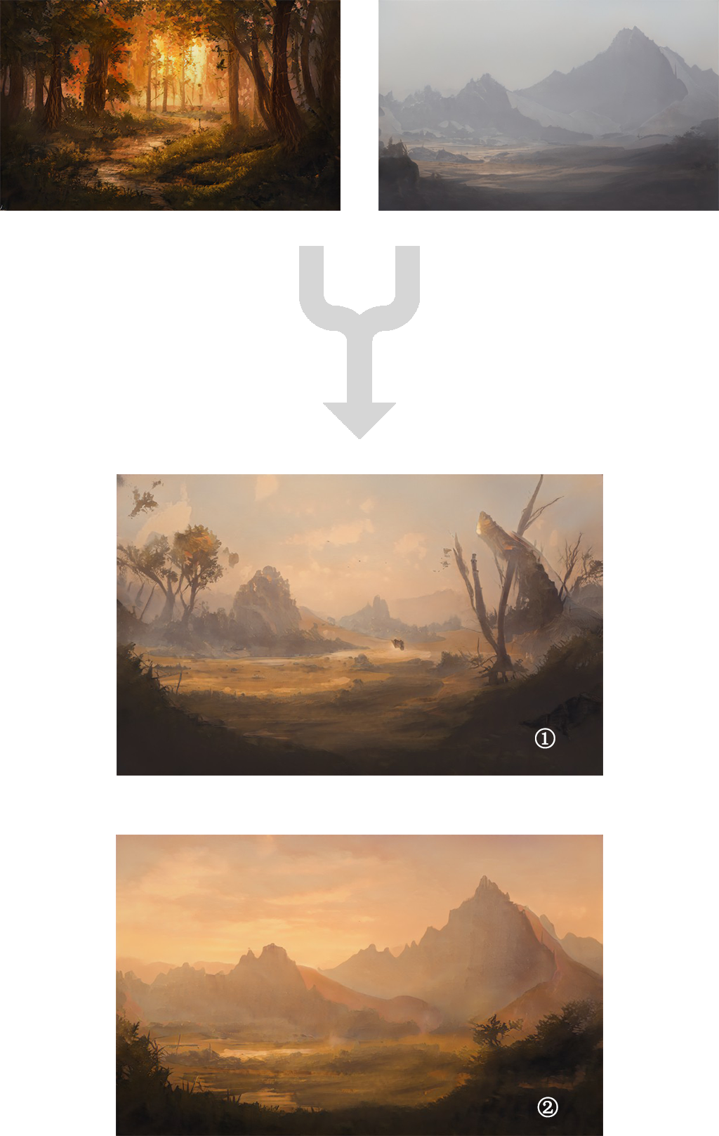 包含天空、山脉、河流、岩石等,不同元素的结合之后
