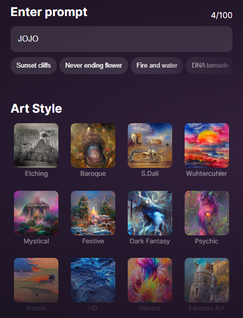 只要输入关键词,网站就能给出相应的作画风格