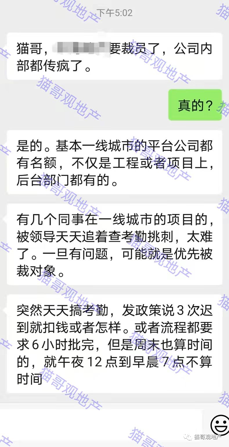 当下的地产人求职很难,希望各位领导多考虑一下社会责任,下手的时候轻一点吧。当然,如果大家有什么不良的遭遇,欢迎来跟猫哥讲讲。