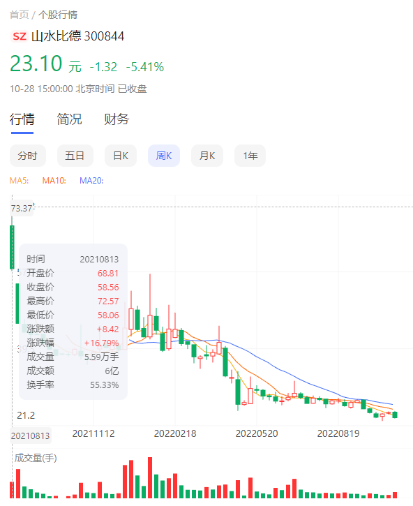 山水比德成立于2007年,总部位于广州,2021年8月13日于创业板上市,首发价格80.23元,再往后最高价为72.57元,此后一路下跌,截至发文时价格为23.1元,较发行价跌去近七成,目前市值有16亿。关于设计公司上市的文章可以看看这两篇《为什么不少设计院开始热衷于上市?》、《有多少上市设计院跌破了发行价?》