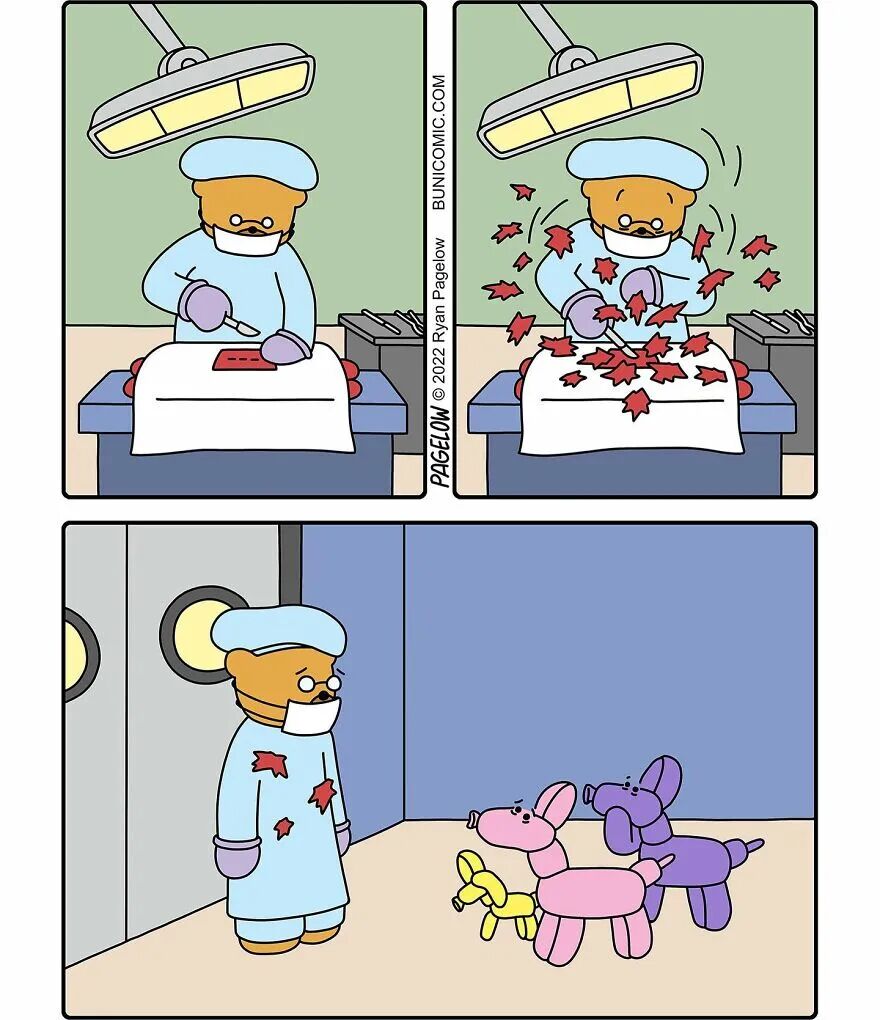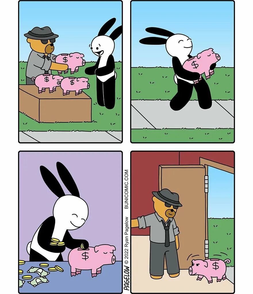 漫画家瑞恩是我们的老朋友了,他颇具代表性的绘画风格和标志性的兔子人,让大家记忆犹新,最让人印象深刻的是他漫画中突然反转的情节,不到最后一幅画面,你永远都猜不到,这组漫画究竟在讲述一个什么样的故事。