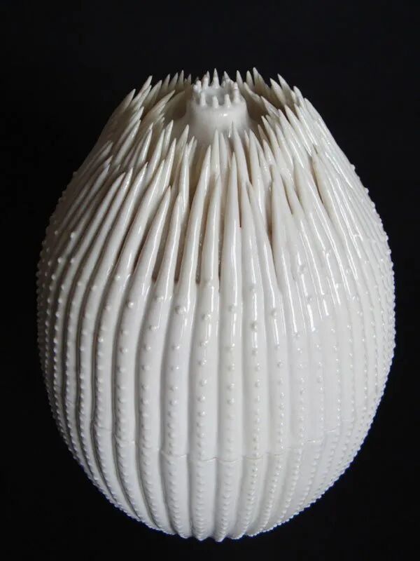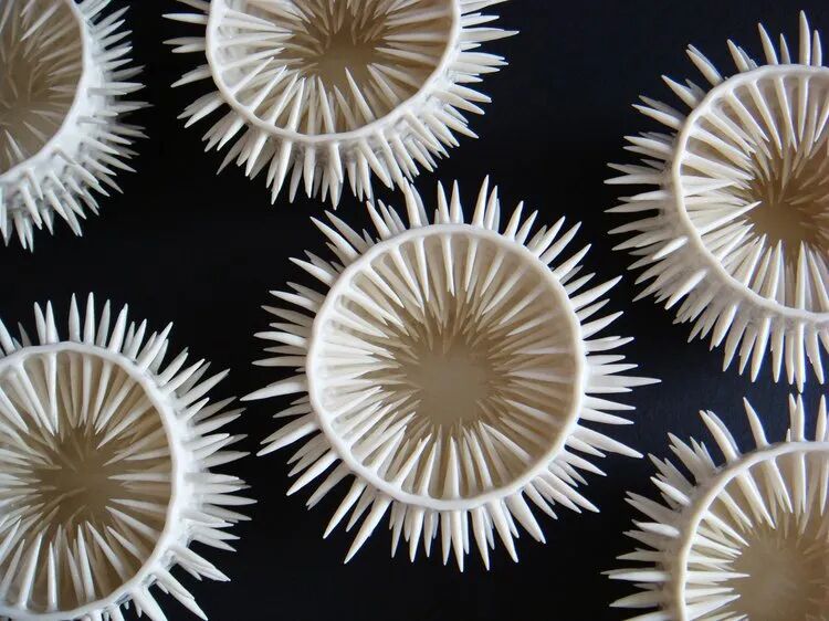 或许是造型越怪,人们越爱的原因,陶瓷艺术品在岔路上走的一往无前,陶瓷艺术家们也各显其能,每一个人都争取将作品制作得古怪,今天,小绛再来为大家介绍一位陶瓷艺术家,这位陶瓷艺术家来自伦敦,名字叫岩本义子,她布满尖刺的陶瓷作品,给人留下深刻的印象。