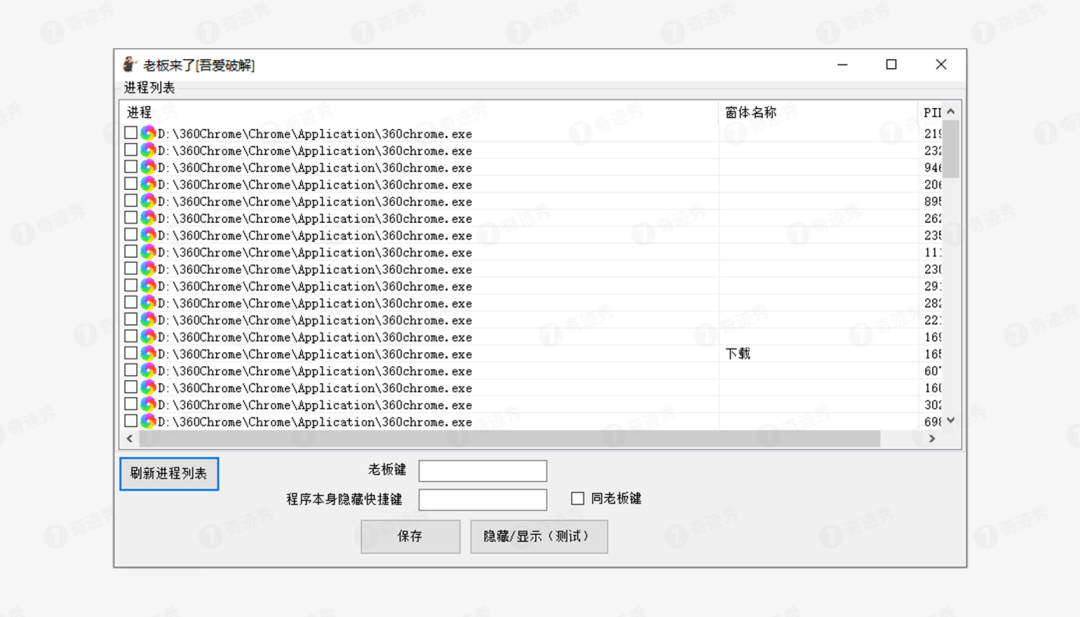 1.老板来了是一款能够隐藏电脑进程中的任何程序,想隐藏什么,就能隐藏什么,完全没有限制摸鱼人请务必收藏好这款神器!