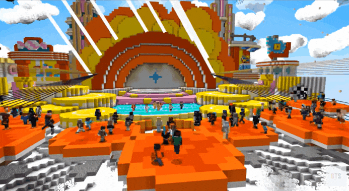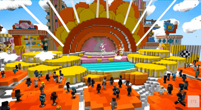 前面介绍的两个演出在元素和风格上稍微有些相同!下面给大家介绍的是防弹少年团(BTS)在《我的世界》里的演出。