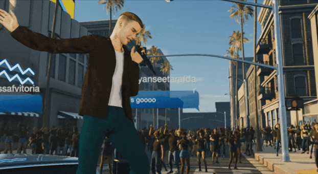 比伯的这场演出进行了人体动捕,是完全实时的。这场演出也有很多互动体验环节,演唱会开始时粉丝可以通过 Wave 平台或比伯的 YouTube 官方账号观看直播,虽然观众没有自己控制镜头的虚拟形象,但是整个体验还是非常完美的。