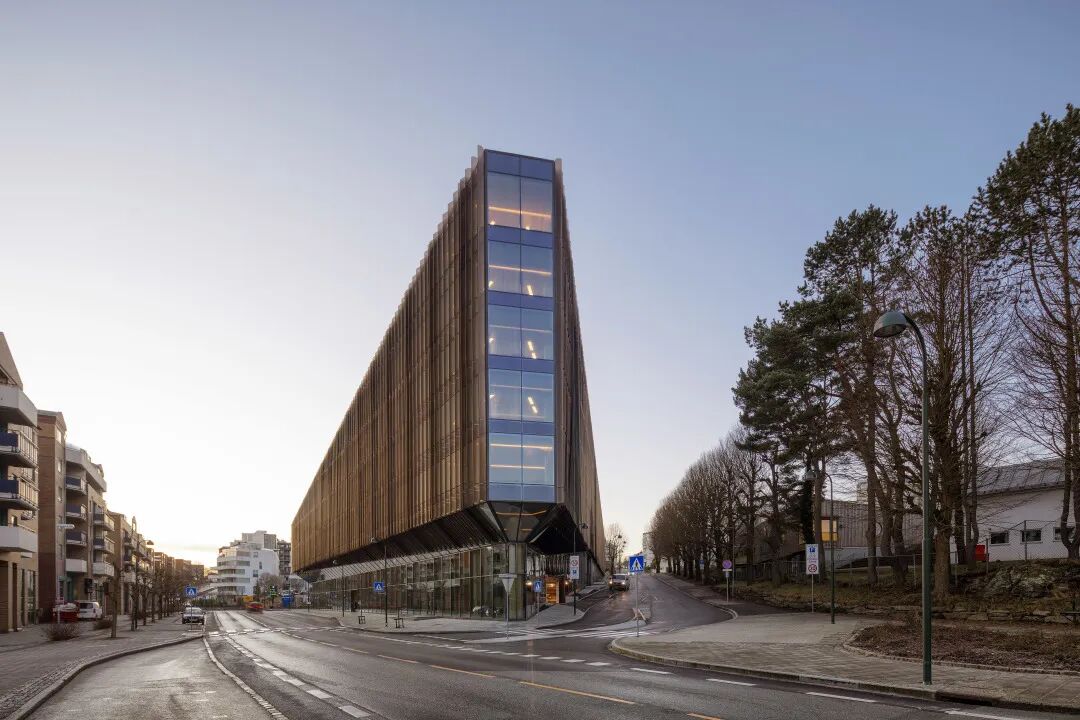 甲方设想的斯塔万格的Bjergsted金融园区,是一个公司可以实现其愿景并为周围环境提供最佳服务的地方。这座七层高的建筑是未来工作场所的典范,也是欧洲最大的木材办公楼之一。各个体积的高度不同,以适应周围建筑的不同规模和特征。
