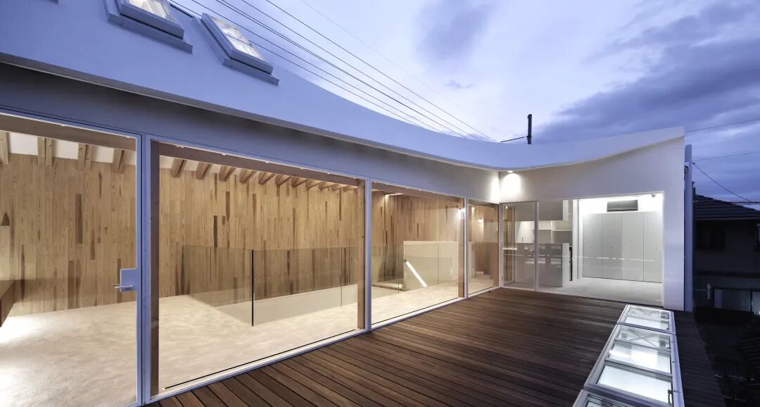 这座房子为了将温暖和光线引入这个独特的场地,建在九十年前的前住房博览会的位置上,周围住宅区的方向和形状影响了结构西立面的轮廓,山墙屋顶与邻里融为一体,向西划出弧线,呈现出一丝现代主义的气息。
