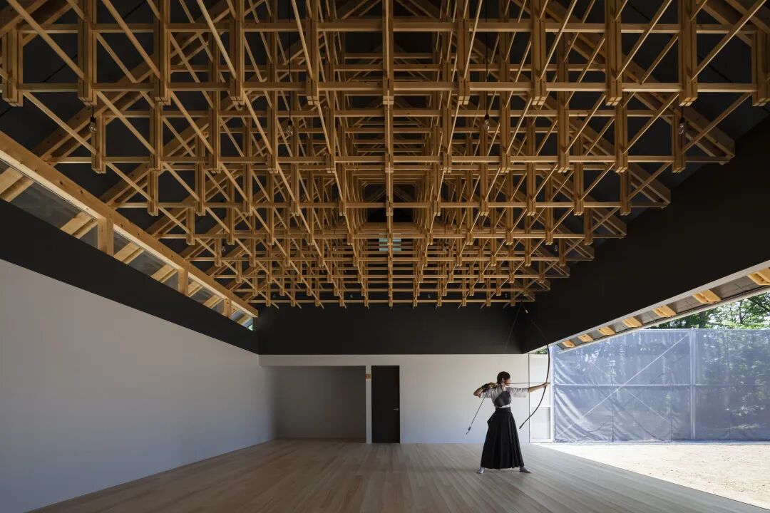 FT建筑事务所在考虑新射箭馆和拳击俱乐部的设计表达时,在东京西部工学院大学的场地上创建了一对相距数百米的建筑。大学由当地采购的木材制成的低成本结构,为学生提供无障碍和鼓舞人心的空间。这两个设施都需要一个无柱空间,其大小可与日本传统寺庙的神殿相媲美。