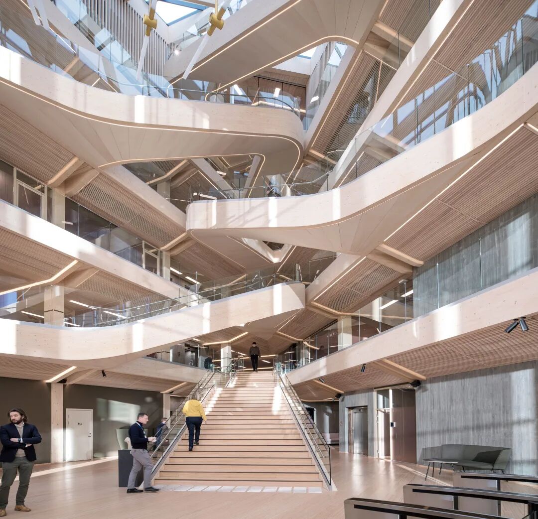 Think Wood团队正在考虑使用木材来降低建筑的碳足迹;AEC公司正在开发木材,因为它的碳密集度低于其他结构材料。从预制建筑到模块化建筑和混合技术,它的应用无处不在,今天的木材项目展示了具有乡土建筑技术和现代构造表达的木材,虽然它们不受特定地点或地区的限制,但它们对外壳、覆层、结构等进行了共同的更深层次的理解。