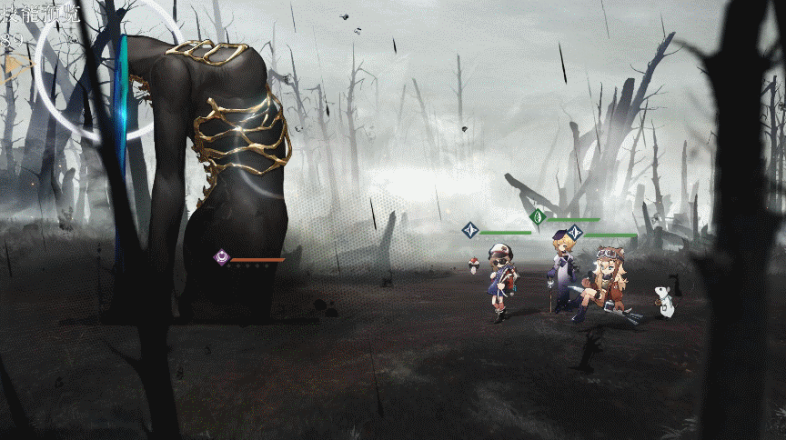 谈完了世界观和表现形式,再来看看玩法。该作玩法在本质上依然是回合制战斗,而其中的动画表现会成为玩家重要的游戏体验之一,因此,制作组对《重返未来:1999》的战斗动画也进行了精心的打磨。同样在战斗动画表现的包装上面,也依然坚持做到高度的统一,依然贯穿着神秘学、复古、怪诞与艺术性的表现。