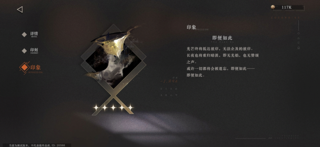 随着剧情叙述的推进,《重返未来:1999》在美术表现上对细节的表达拿捏也非常到位,将世界观所表达出来的概念的抽象变为外在美术表现,让相关情节的文字与画面脱离一般的审美范畴,带给玩家一种抽象的美感并增强了故事的代入感。