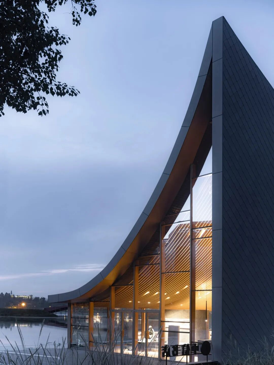 慕达建筑设计的成都兴隆湖中信书店,屋顶如一张翻开的书页