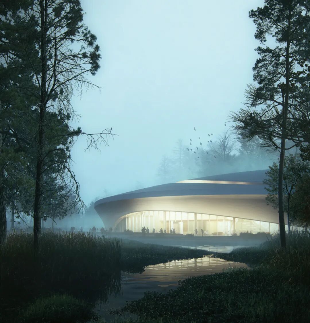 兴隆湖中信书店的建筑旨在体现 MUDA Architects 的建筑理念,以视觉呈现一本从天而降的书。这一引人注目的设计入围了 2022 年 Dezeen 设计大奖的最佳商业建筑类别。