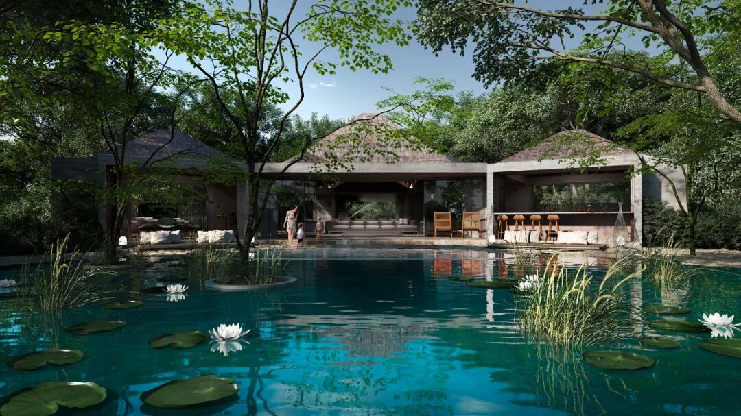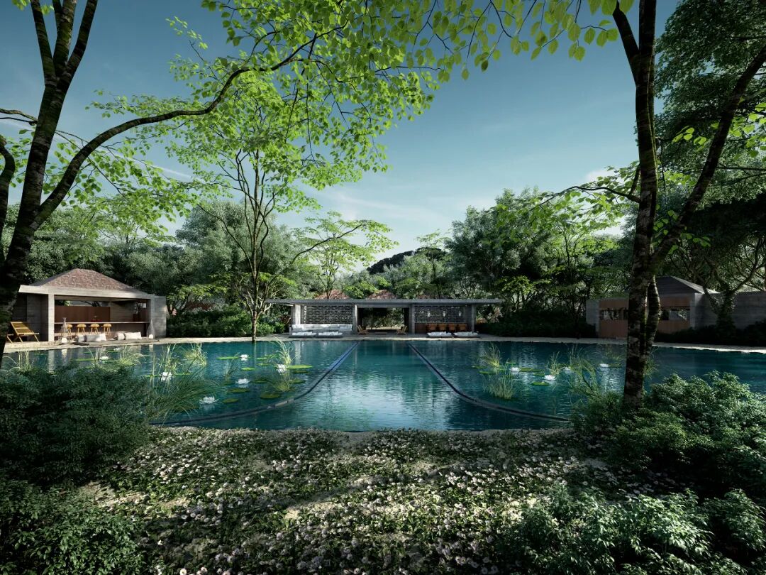 该项目的住宅分散在人工湖四周,每一套都是 4 居室设计(1 间带露台的主卧室和 3 间客房),5 个卫生间,除了客餐厨外还拥有超大户外空间,物业还可为居民提供专属的维护、管理服务。