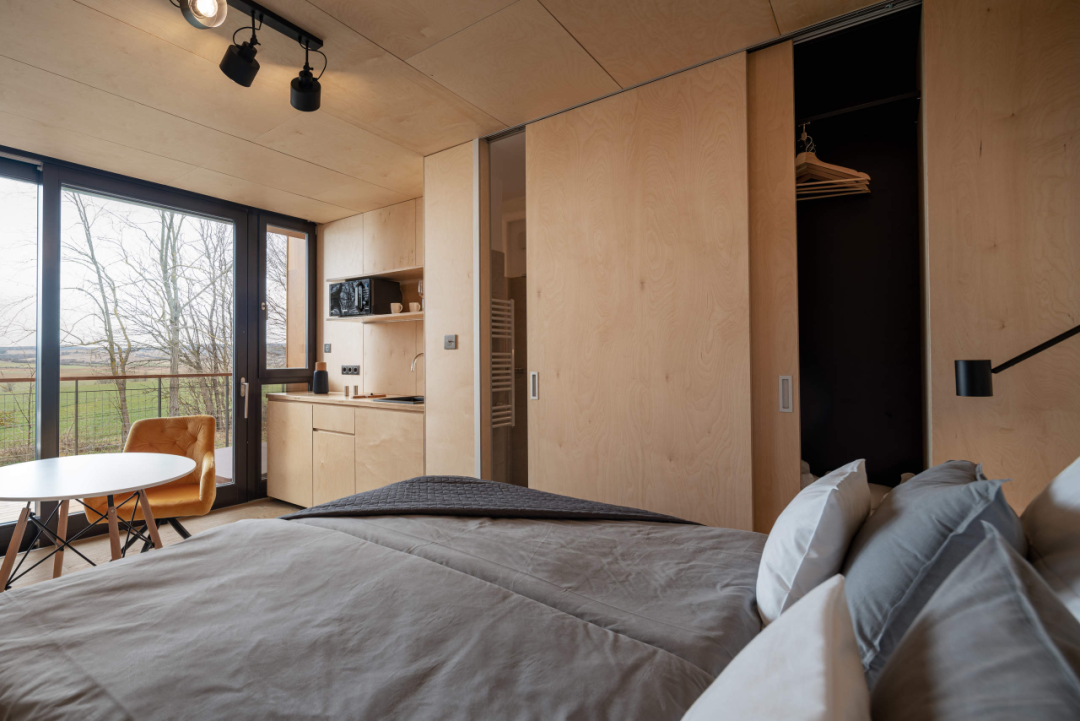 「Kabinka 」也是 Hello Wood 设计的预制度假屋,拥有三个尺寸「Kabinka S」、「Kabinka M」、「Kabinka L」,是一个可以根据客户需求选择大小的小屋。