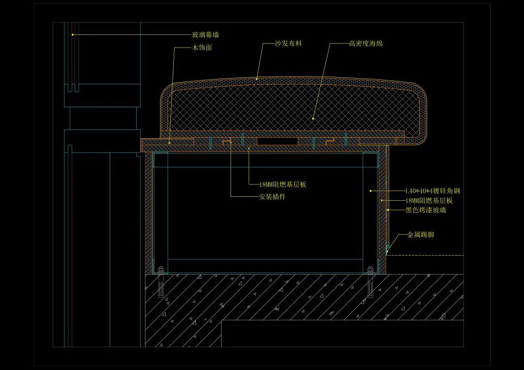 靠窗坐垫跟幕墙收口,节点图,该怎么画?