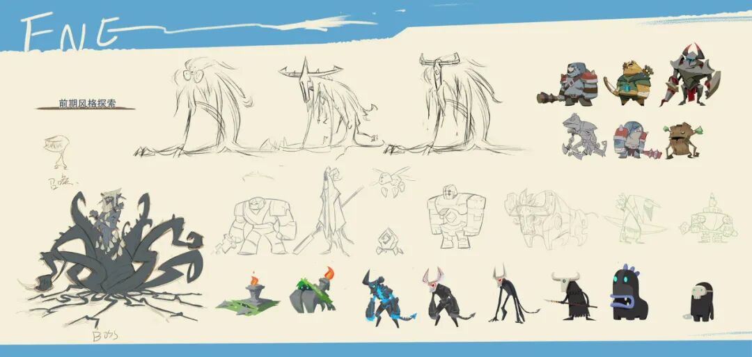 有趣:一开始画出来的几个丧尸就是很普通的丧尸,不够有趣,又重新设计了几个,投稿作品里那几个喽啰丧尸就是一开始设计的。
