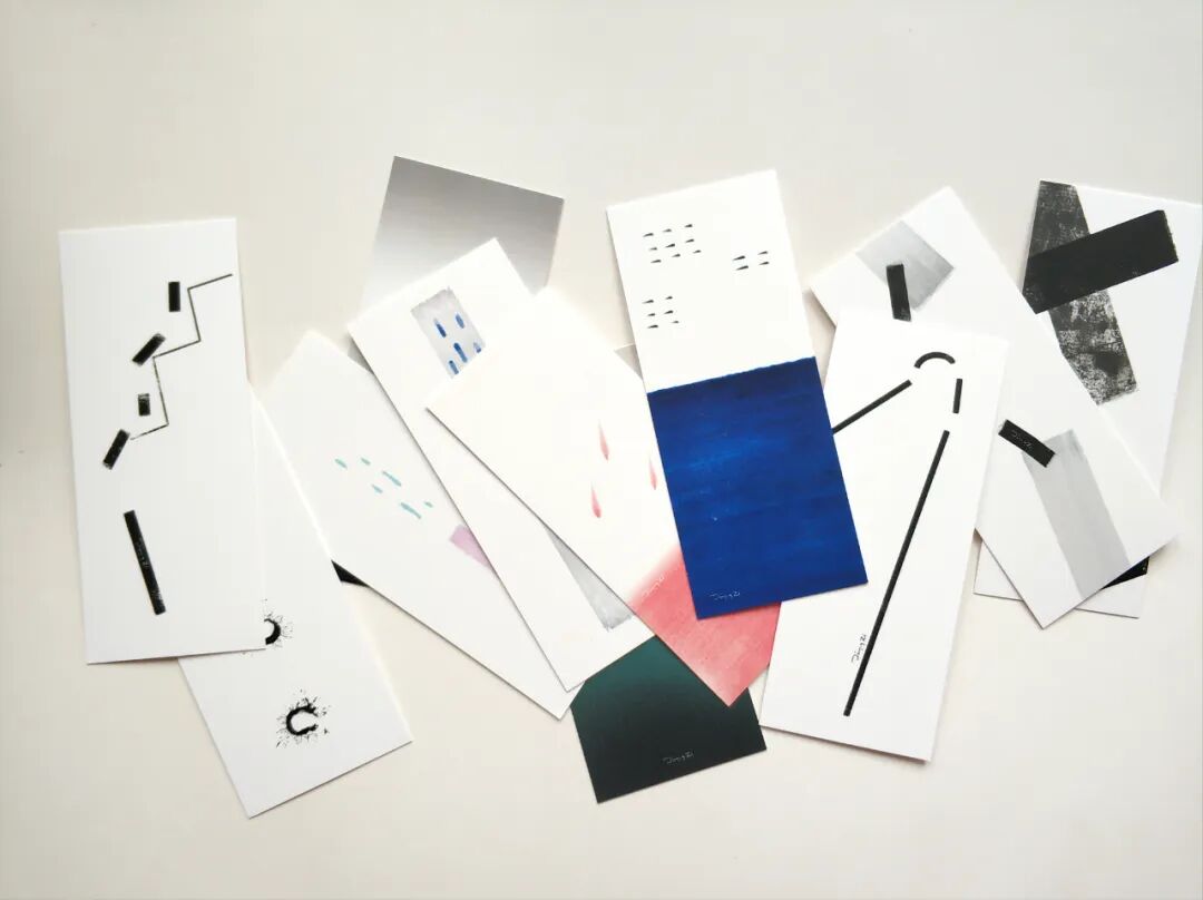 我们选取了邹老师作品制作成最简单的书签,背面藏有艺术家随机写下的诗句。也许你也有可能挑到背面空白页的书签,可以写上自己喜欢的诗句领回家。