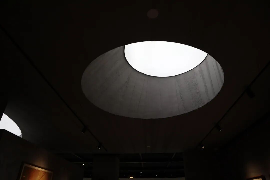 值得注意的是,馆内关注了灯光在不同形态上产生的光影,设计师一方面利用间接照明凸显建筑的几何造型,另一方面通过聚光灯强调美术作品的细节。既保证了画作观赏的体验,也避免了高温照射对画作产生的影响。